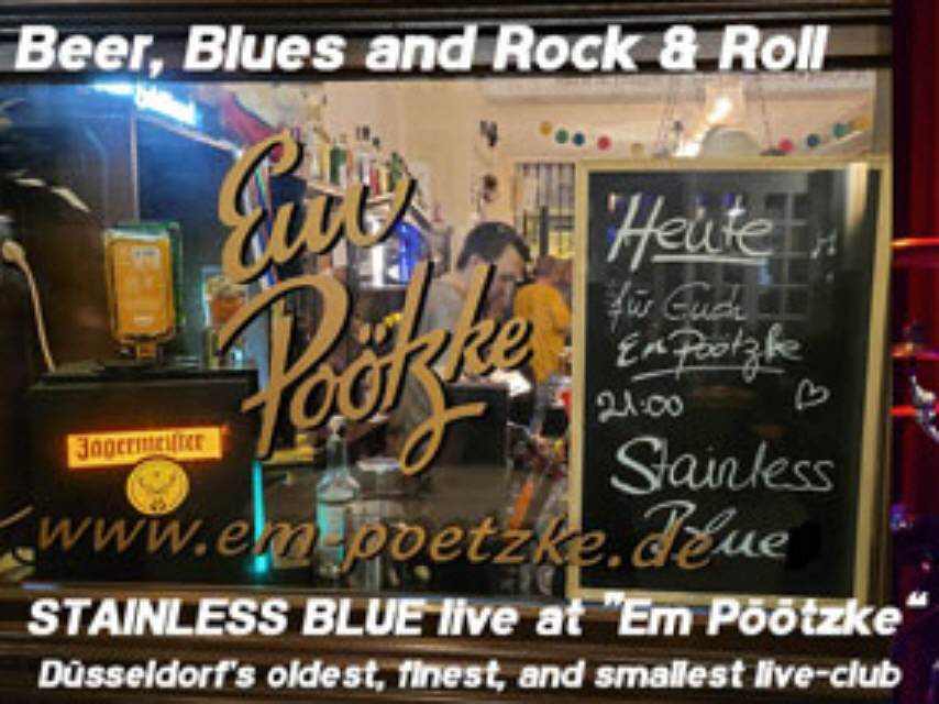 Bier, Blues und Rock&Roll heisst es, wenn STAINLESS BLUE das "Em Pöötzke" in der Düsseldorfer Altstadt rockt. "Em Pöötzke", die älteste. kleinste und schönste Kneipe mit Live-Musik in Düsseldorf.