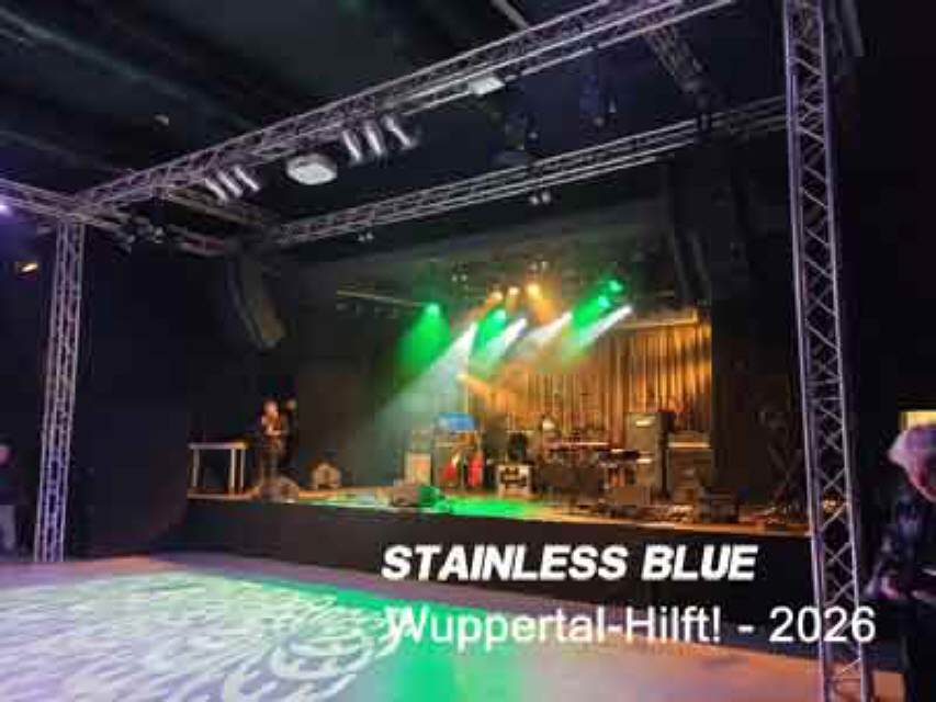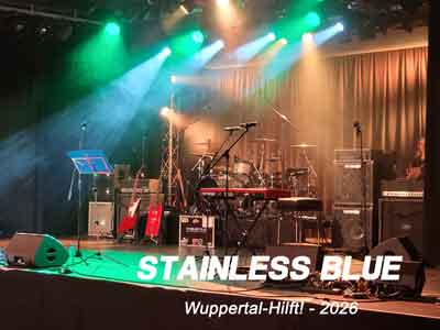 Am 24.01.2026 war STAINLESS BLUE Teil des 16. Benefiz-Festivals "Wuppertal-Hilft!"– ein Festivalabend mit großartiger Organisation, tollen Bands und fantastischem Publikum. Die Stimmung war elektrisierend, die Bühne bebte – und trotz allen Rock’n’Rolls wurde nicht vergessen, Gutes zu tun: Alle 80 Mitwirkendenten spielten ohne Gage, der Erlös der Veranstaltung ging das das Wuppertaler Sozial-Projekt "Die Krawatte".